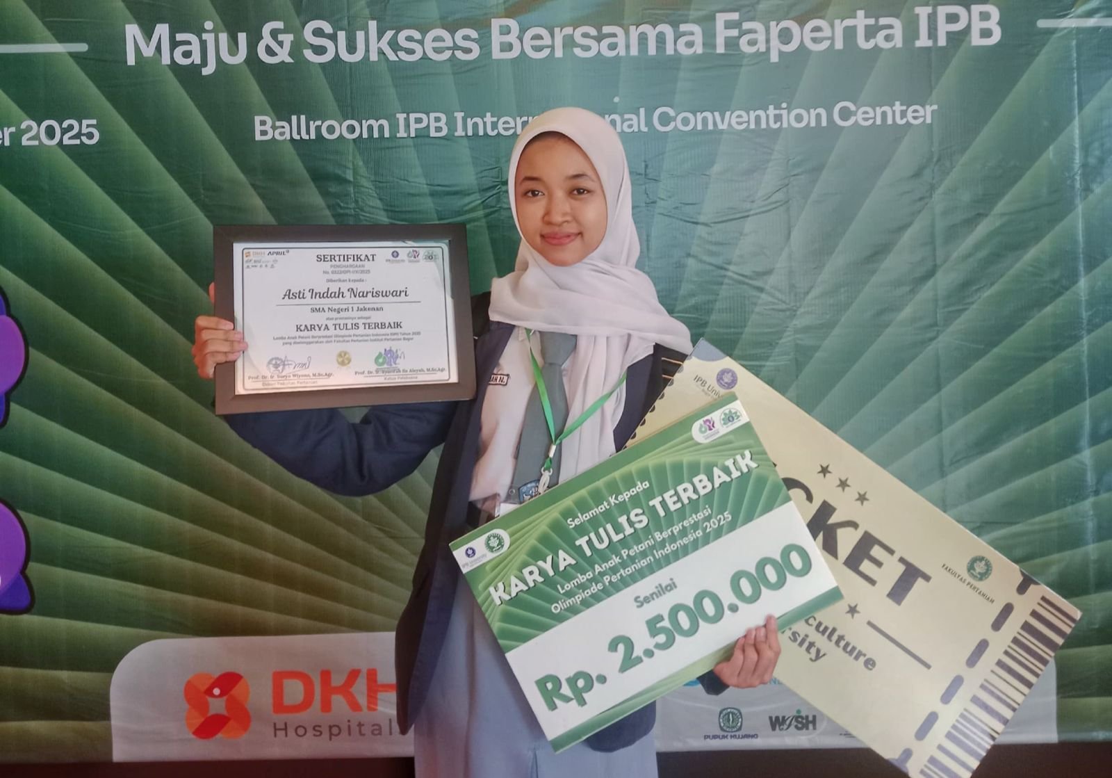 Pati — Prestasi membanggakan diraih oleh Asti Indah Nariswari, siswi SMAN 1 Jakenan, Kabupaten Pati. Anak petani asal Desa Jakenan ini berhasil meraih Golden Ticket IPB University setelah menjadi pemenang dalam Olimpiade Pertanian Indonesia (OPI) 2025 yang digelar di International Convention Center (ICC) IPB University, Bogor, Minggu (19/10/2025).