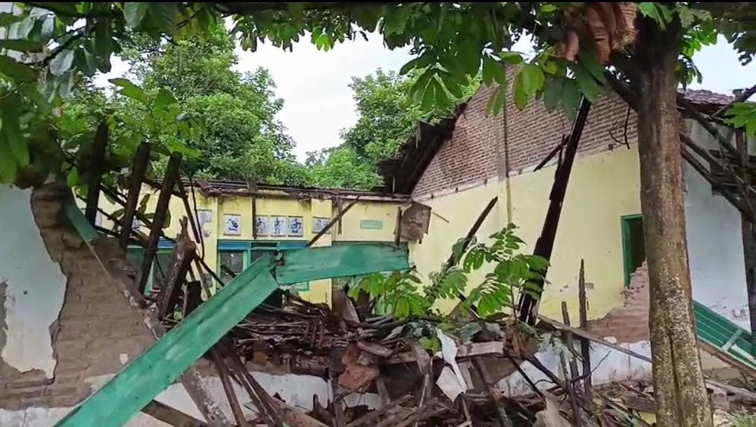 Sudah Dua Tahun Rusak, Ruang Kelas SDN Sambirejo 02 Akhirnya Roboh